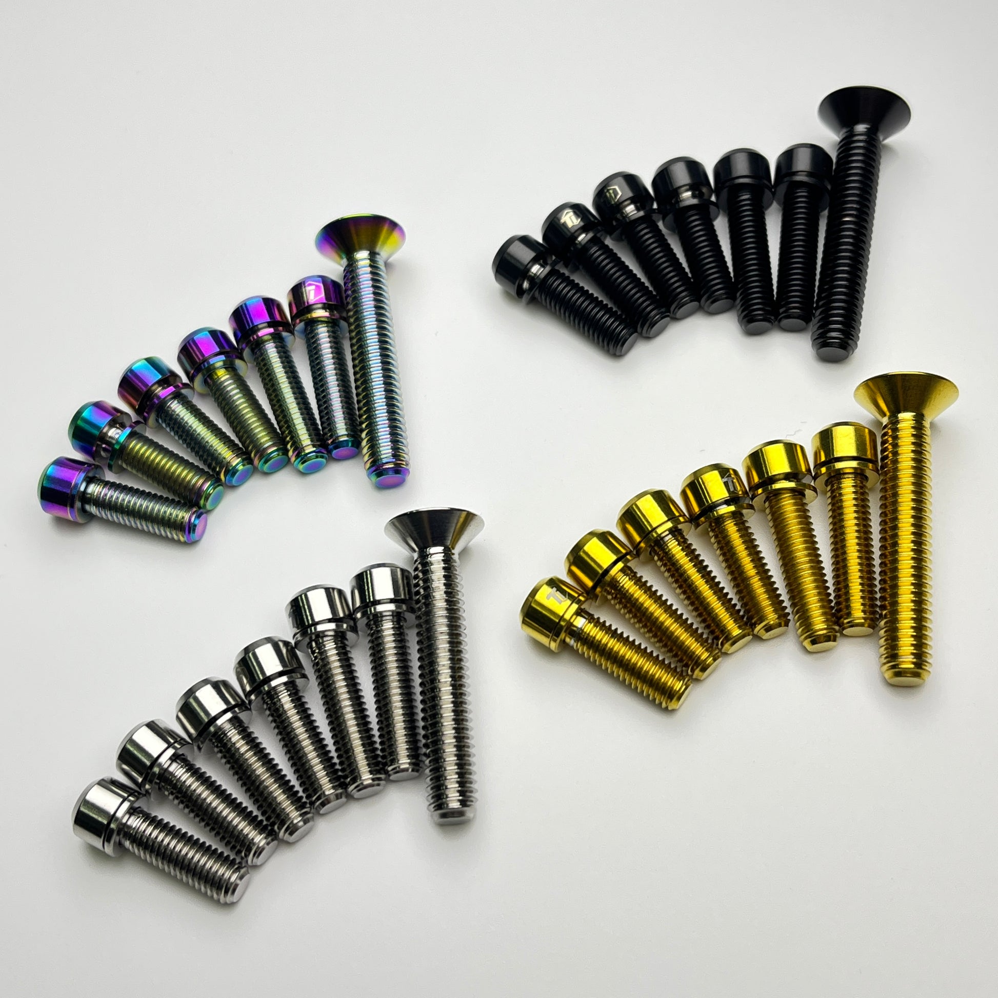 عادةً ما تكون مسامير التيتانيوم أخف وزنًا بنسبة 30-50% من المسامير الأصلية. بفضل مقاومتها للتآكل وطلائها بتقنية PVD المتينة، تحافظ مساميرك على لمعانها يومًا بعد يوم!