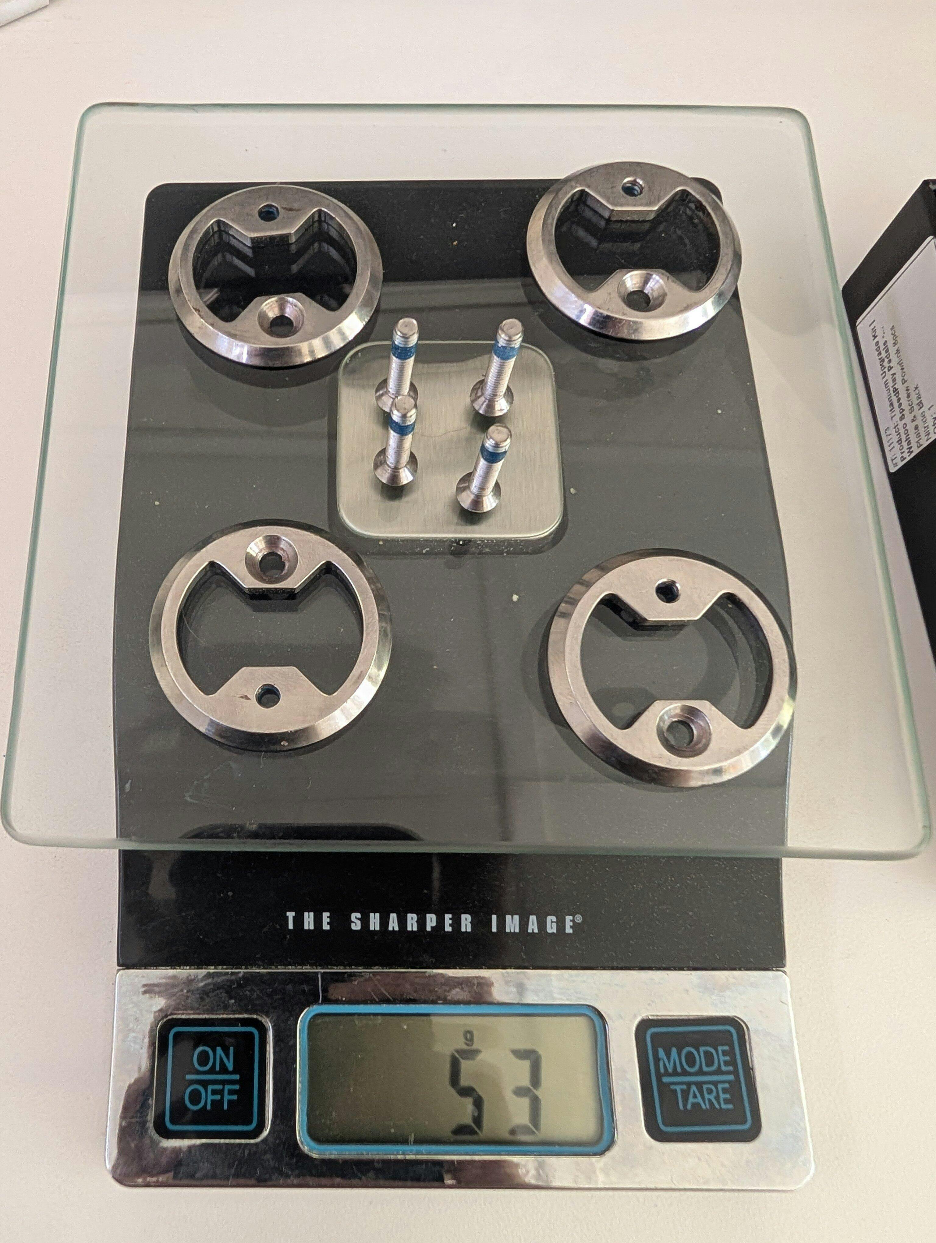 I purchased the plate and **** upgrade for the Powrlink power meter pedals. They fit and look great, but I've already noticed some wear in the finish which was kind of expected. Reduced the weight from 53g to 30g for the complete set.