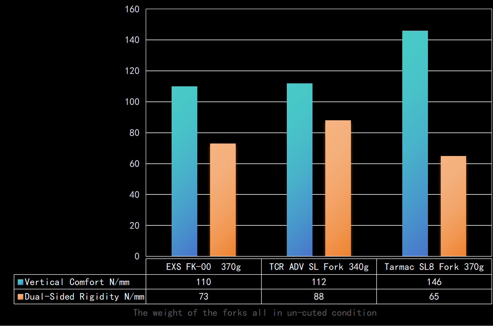 We conducted extensive carbon layup adjustments to find a delicate balance between competitive performance and riding comfort. We also selected forks from some of the high-end bikes from the market as competitive benchmarks.
