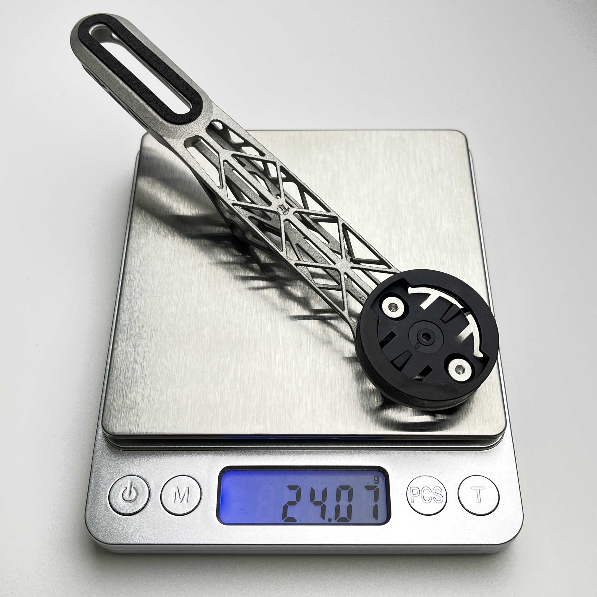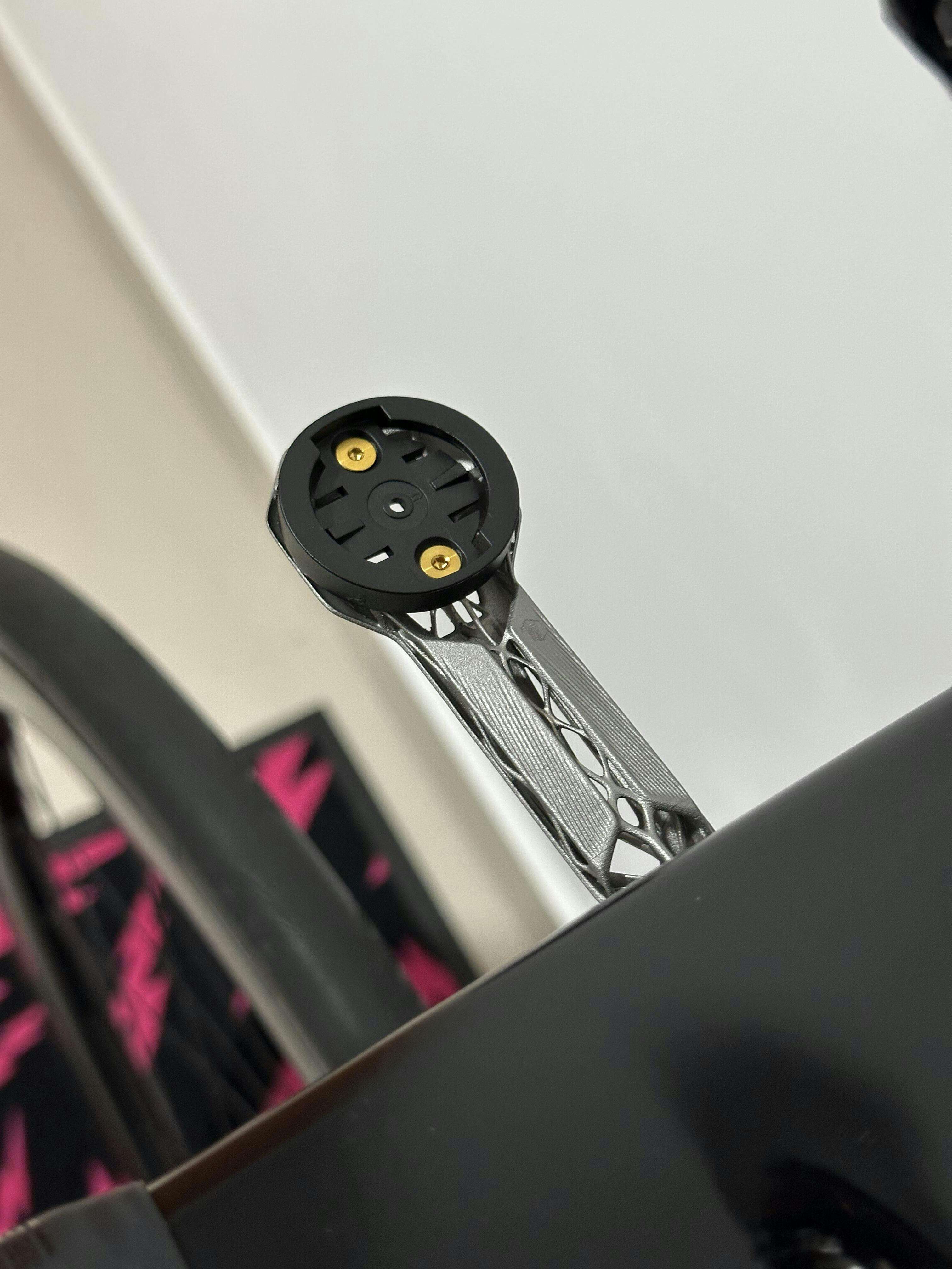 Titanový držák cyklocomputeru vyrobený 3D tiskem pro integrovaná řídítka s univerzálním upevňovacím bodem se 2 šrouby.
