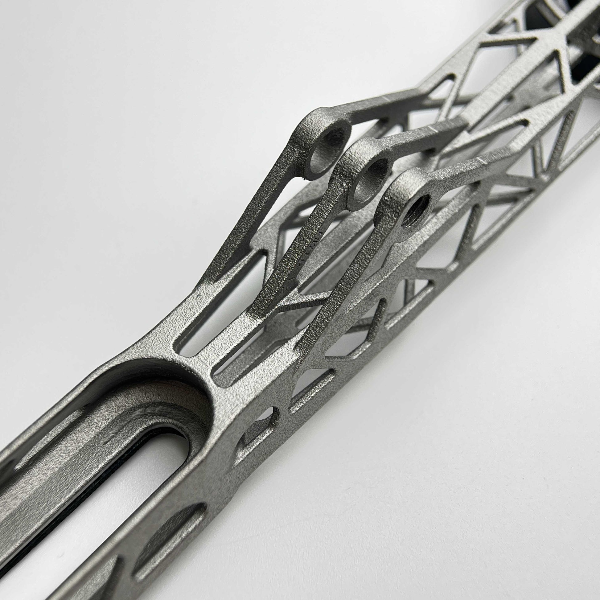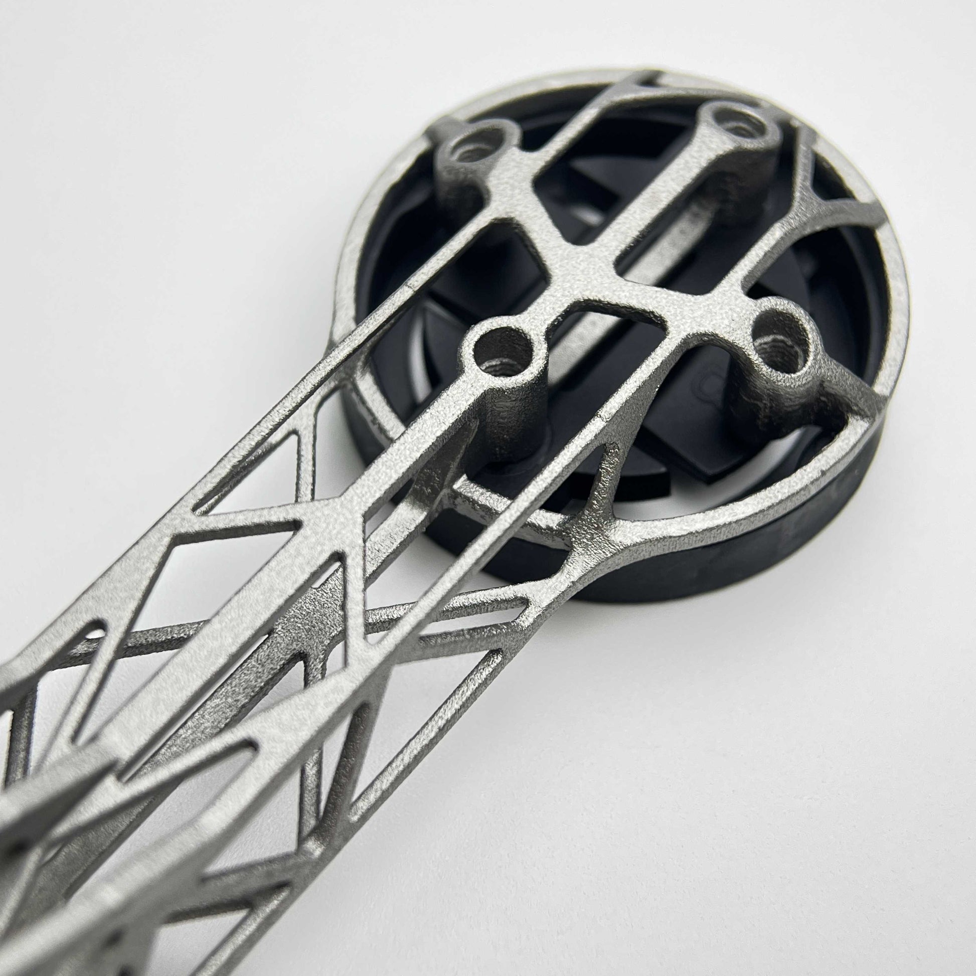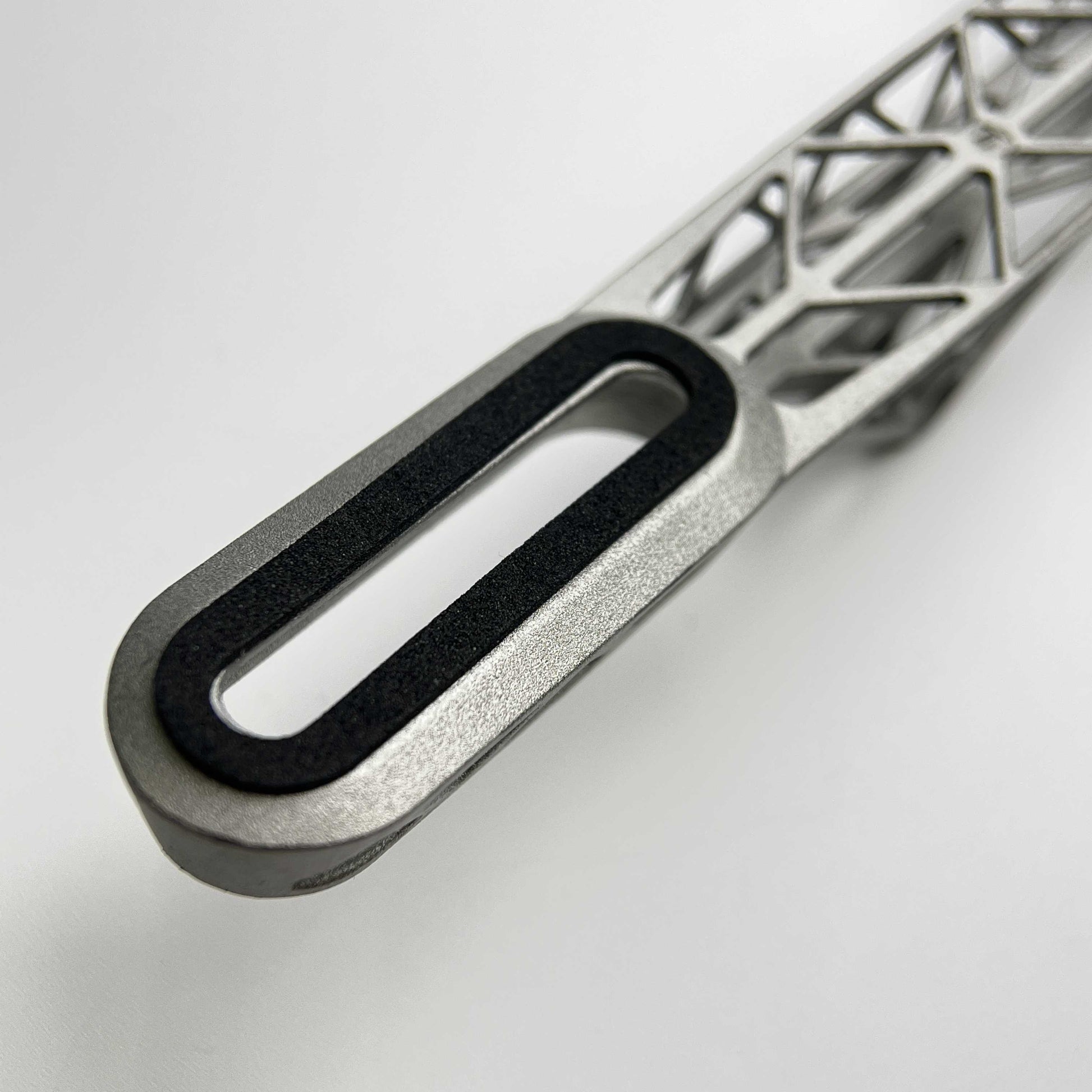 Tento držák se zrodil z honby za minimálním ziskem a minimalistickou krásou . Je vyroben z titanu třídy 5 (Ti-6Al-4V) a pokročilé technologie 3D tisku a dosahuje rovnováhy, kterou tradiční obrábění nedokáže – složitě tvarované konstrukce s výjimečnou strukturální integritou .