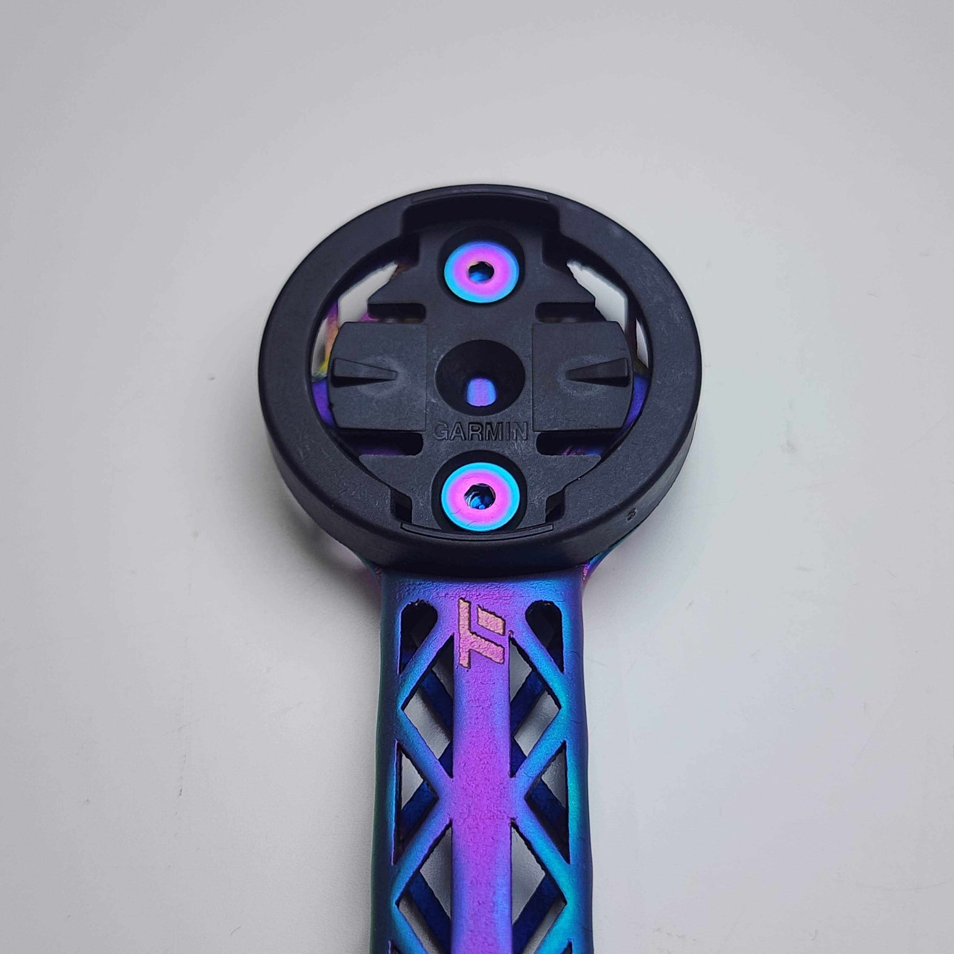 3D-gedruckte Computerhalterung aus Titan für Syncros Creston iC/SL Aero Integrated Lenker, die an Scott Foil/Addict Bikes verbaut sind.