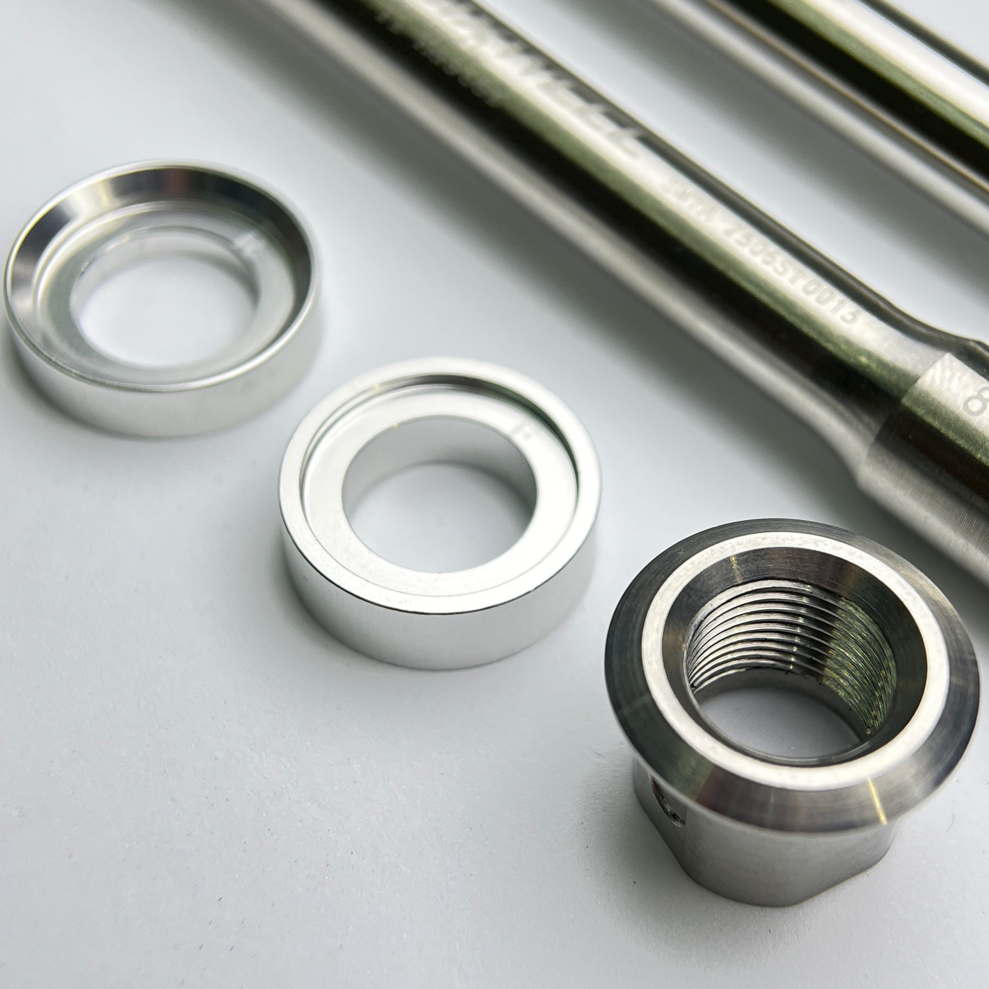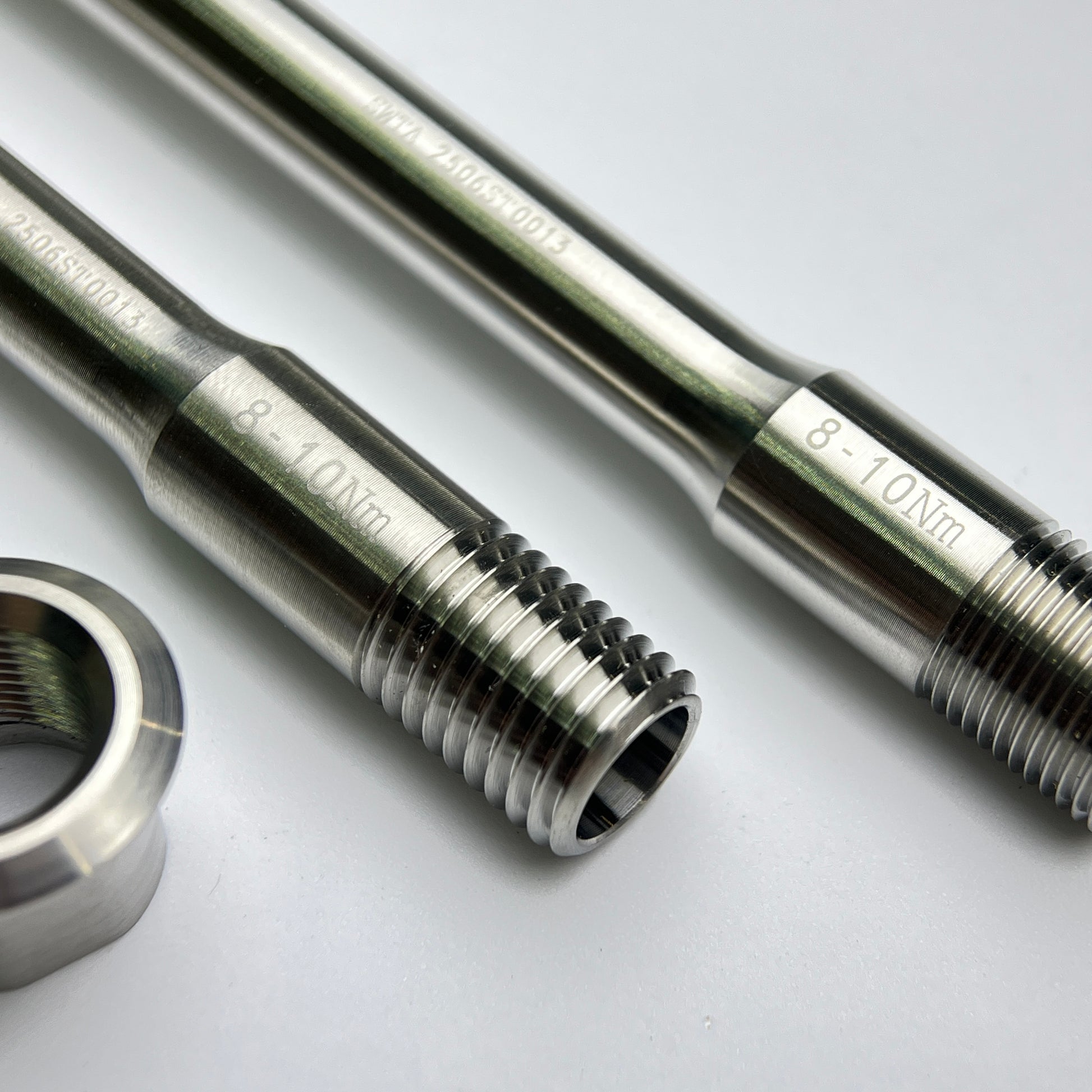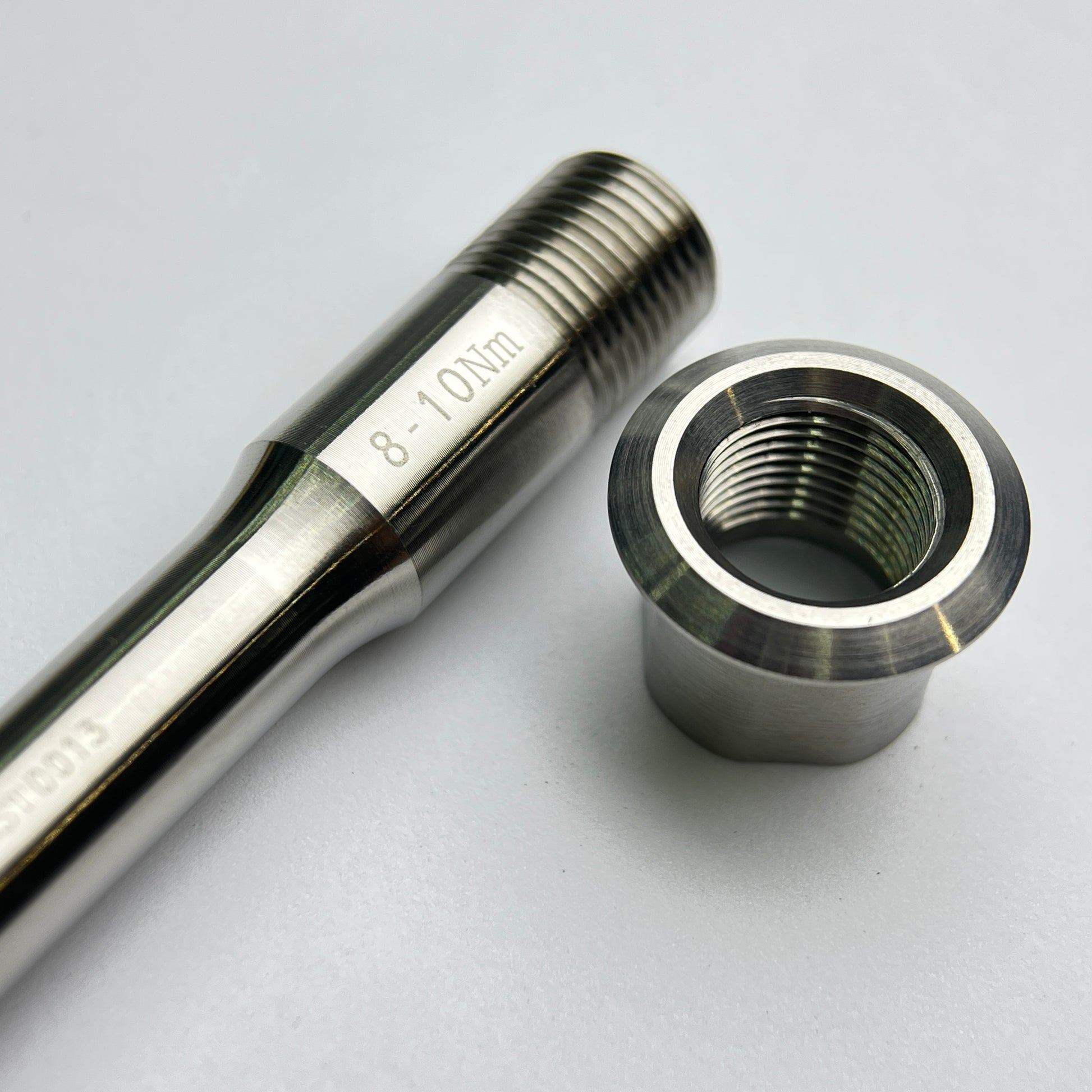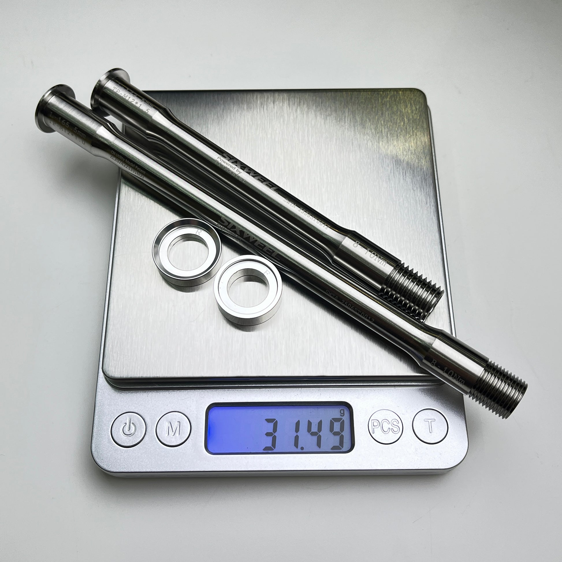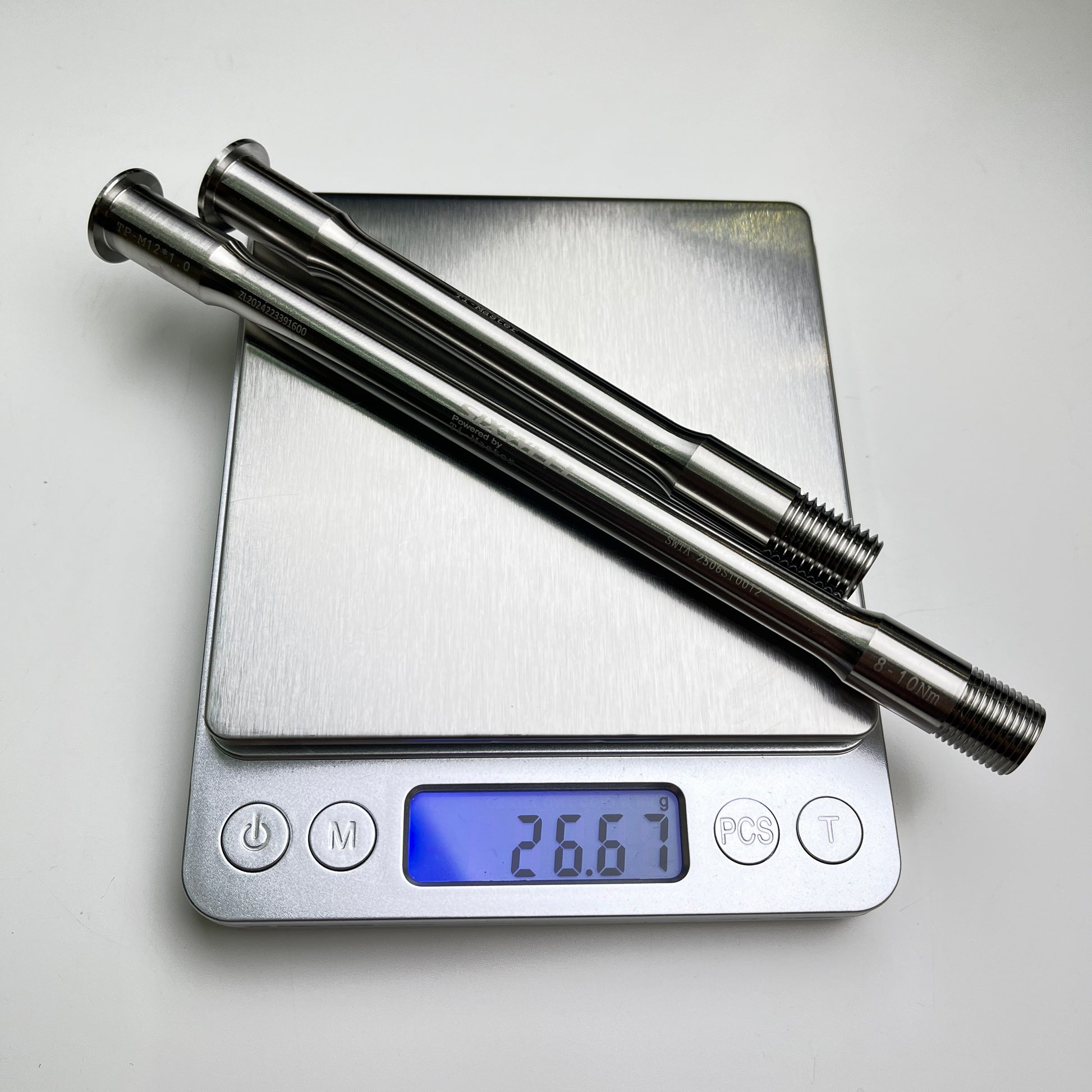 Ειδικά θερμικά επεξεργασμένο κράμα τιτανίου με μηχανική κατεργασία ακριβείας έχει ως αποτέλεσμα αυτόν τον εξαιρετικά ελαφρύ άξονα τιτανίου Thru-Axle για Scott Foil Addict Disc Brake Roadbike.