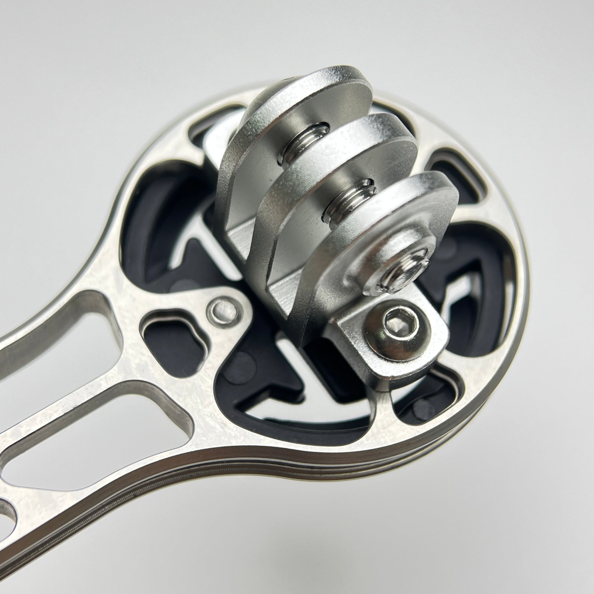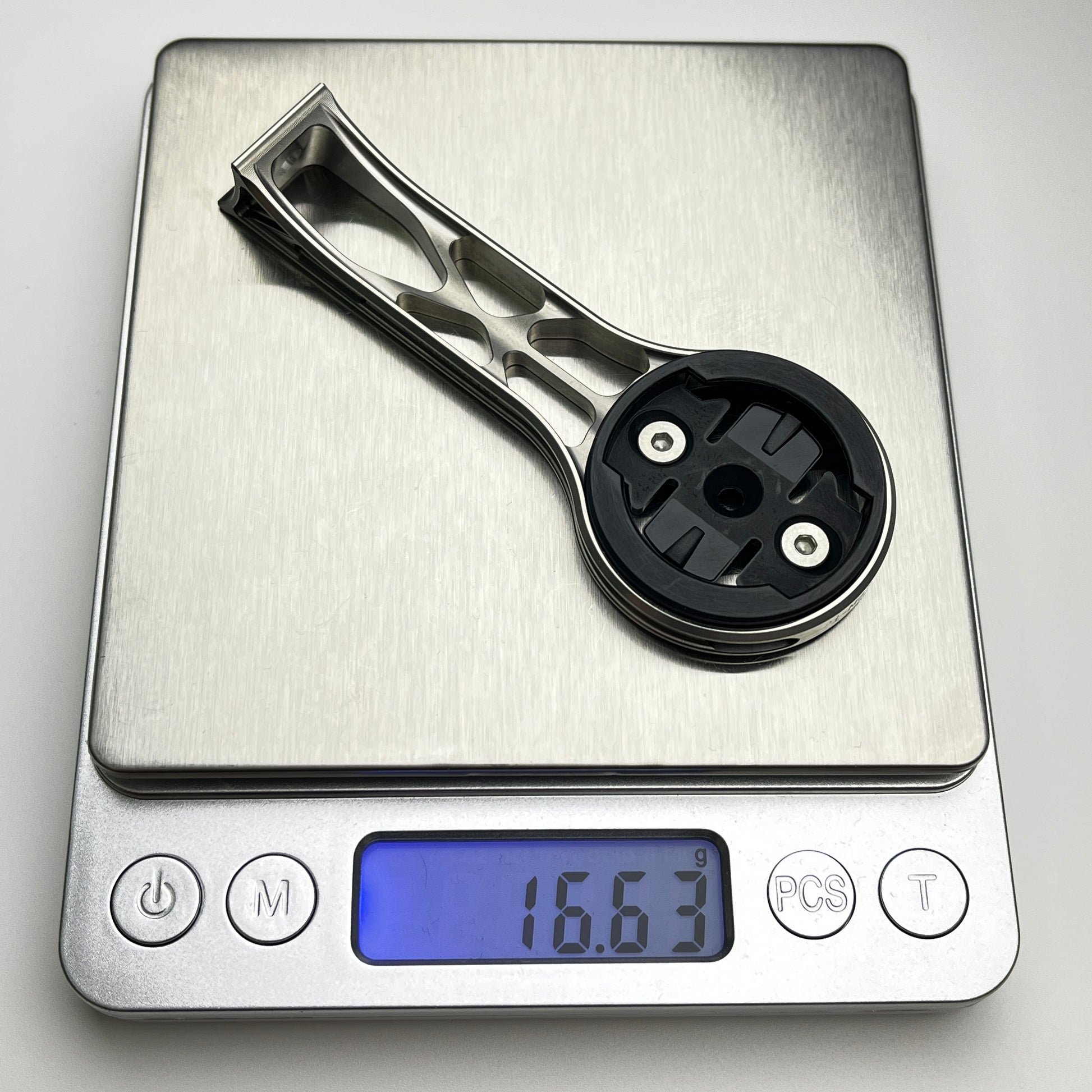 Special heat-treated Titanium alloy with precision machining results in this Ultra-Lightweight Titanium Computer mount for Roval Rapide Aero handlebar,