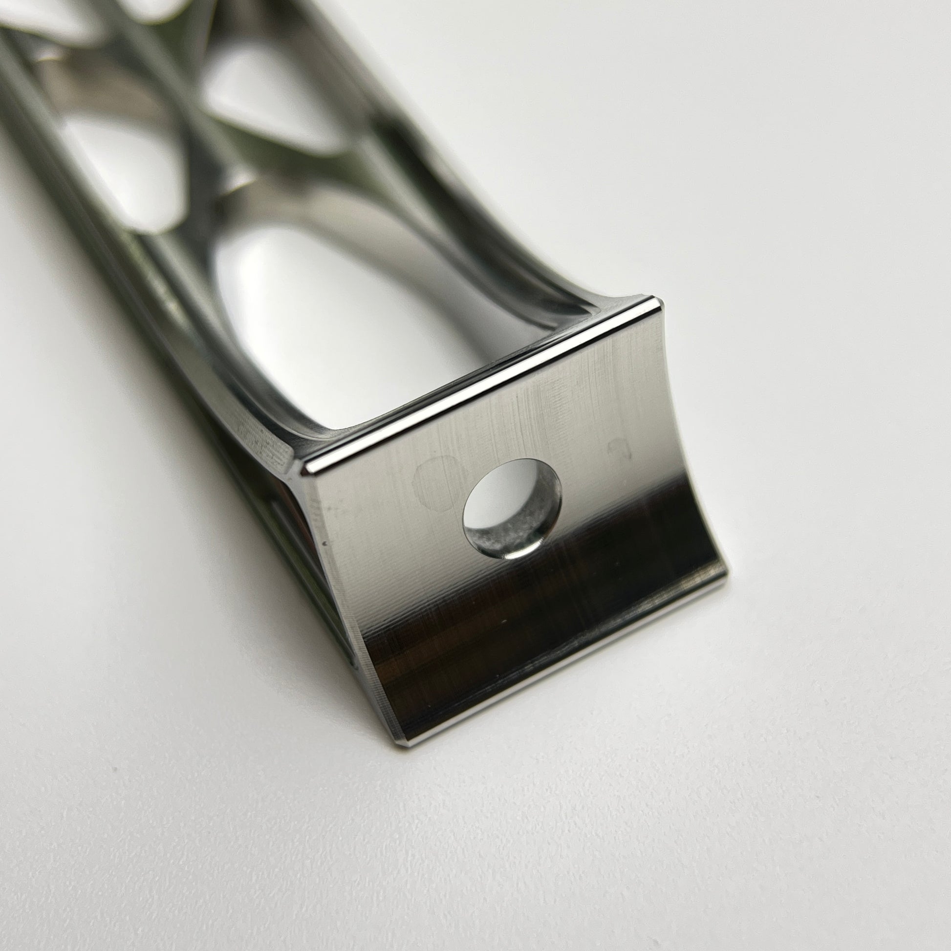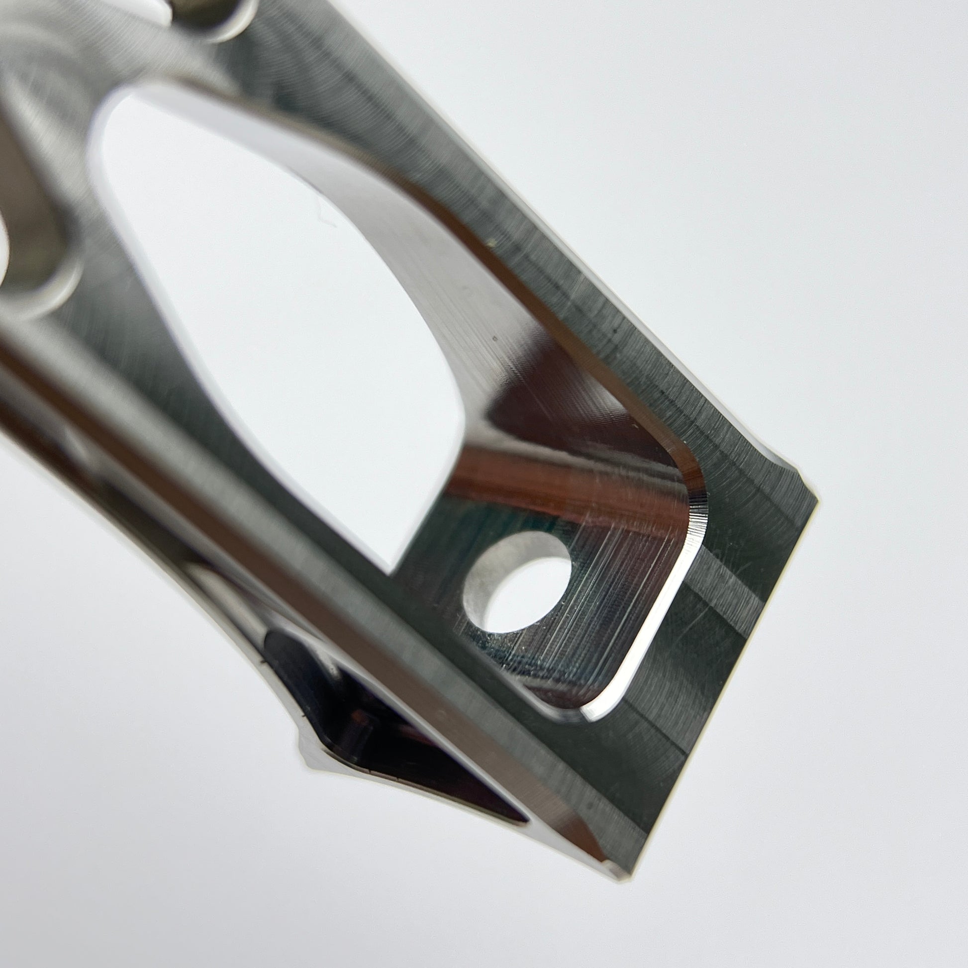 CNC machining direct from titanium block to ensure stiffness to weight ratio,