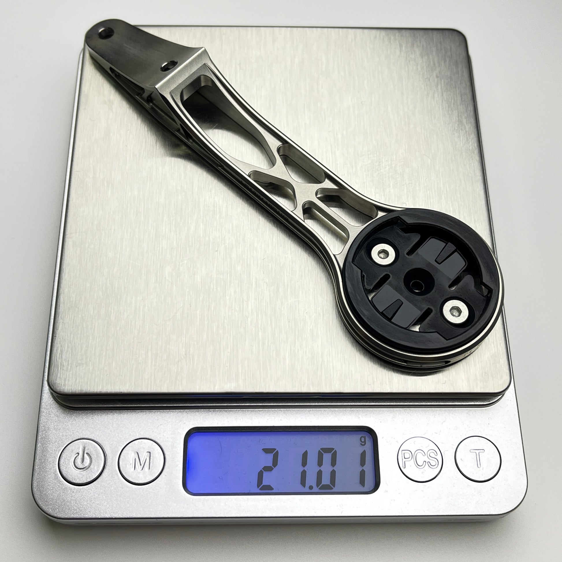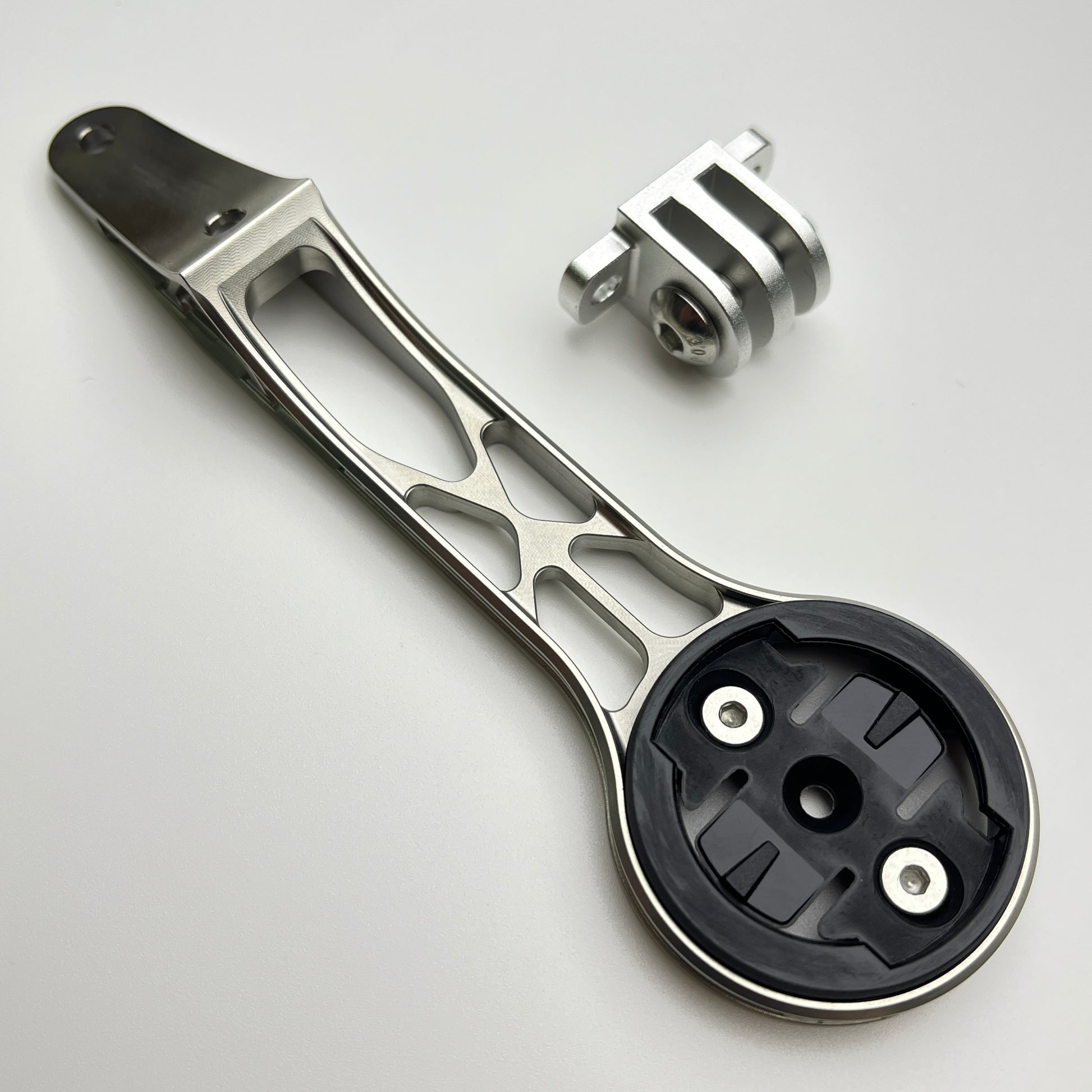 Special heat-treated Titanium alloy with precision machining results in this Ultra-Lightweight Titanium Computer mount for THM Frontale Aero handlebar,
