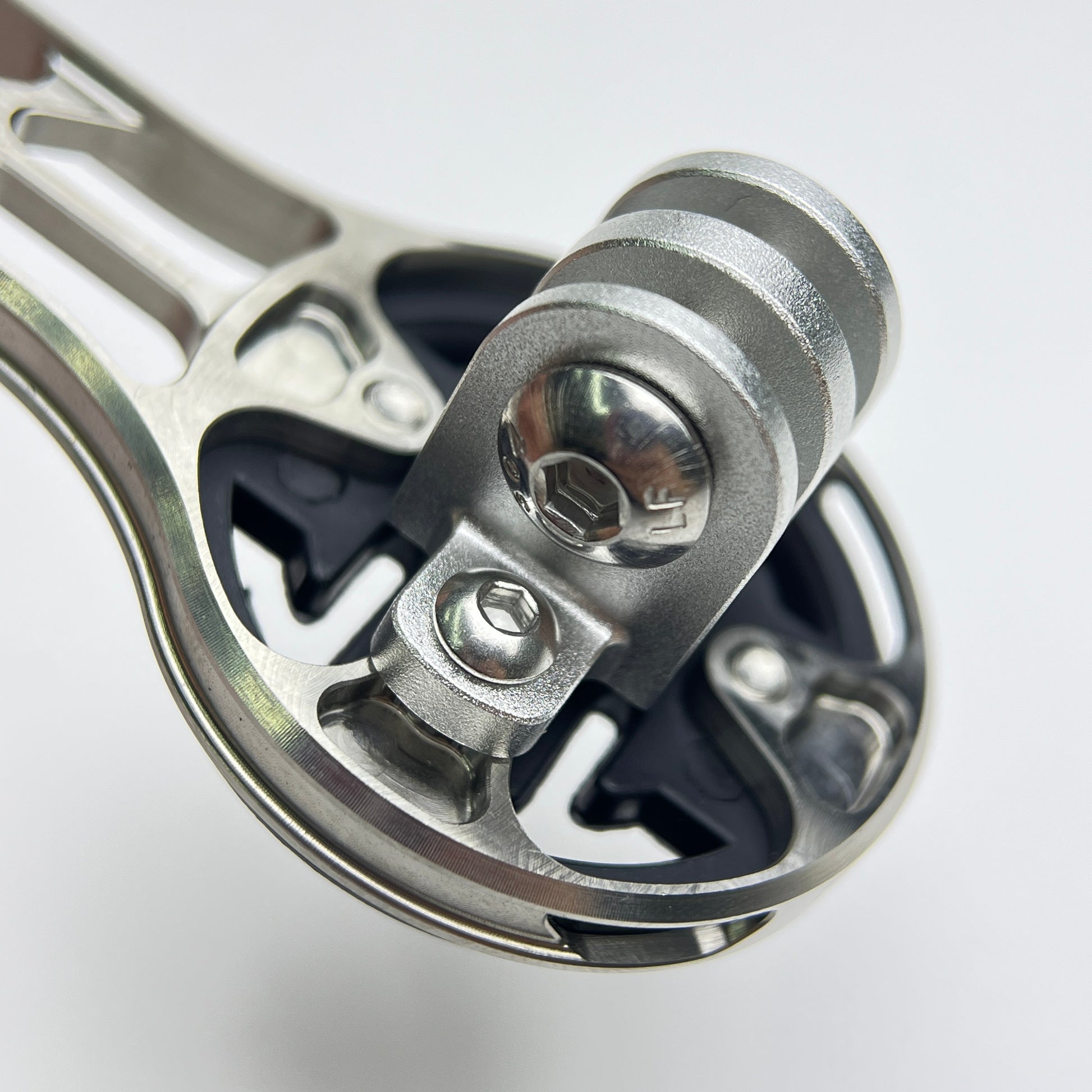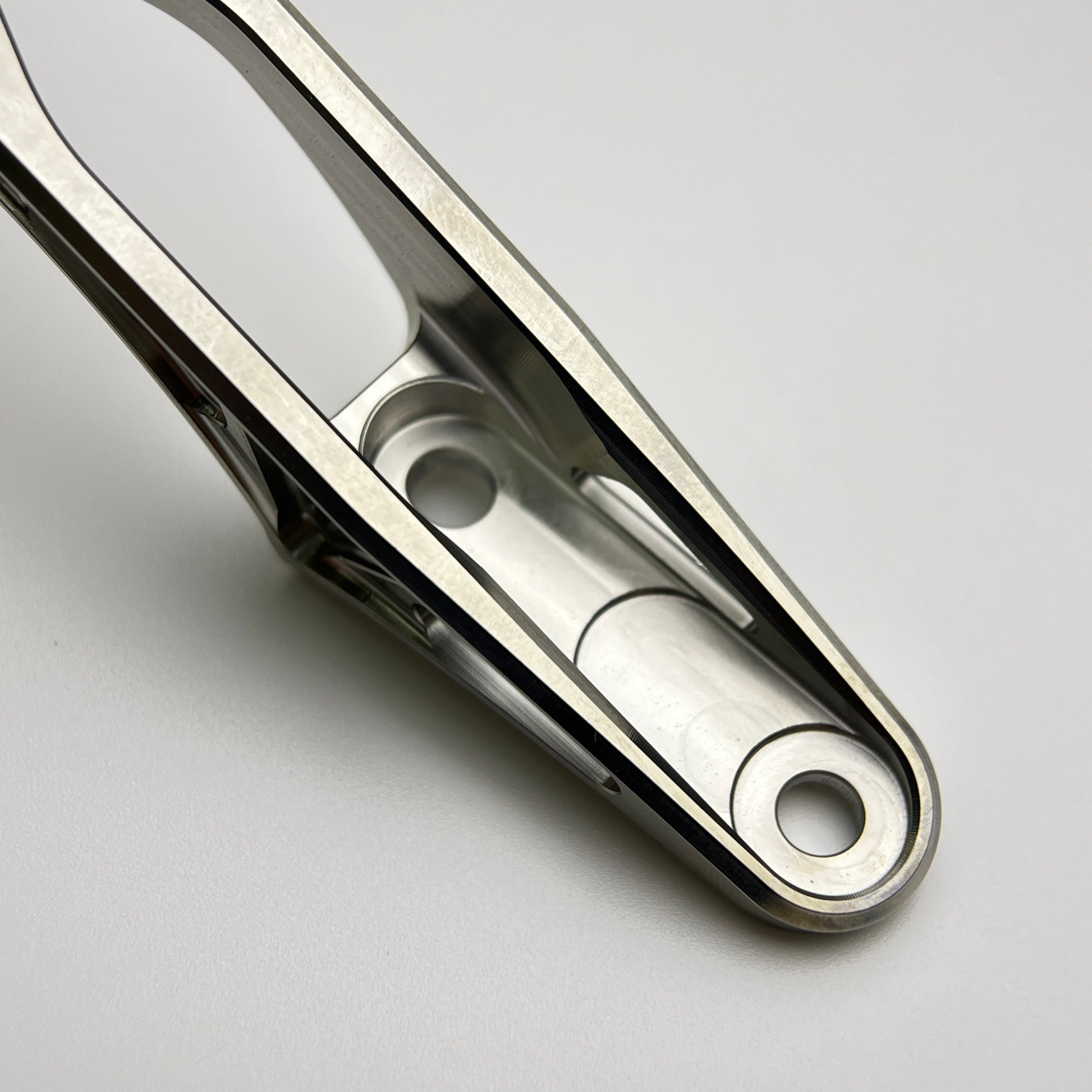 CNC machining direct from titanium block to ensure stiffness to weight ratio,
