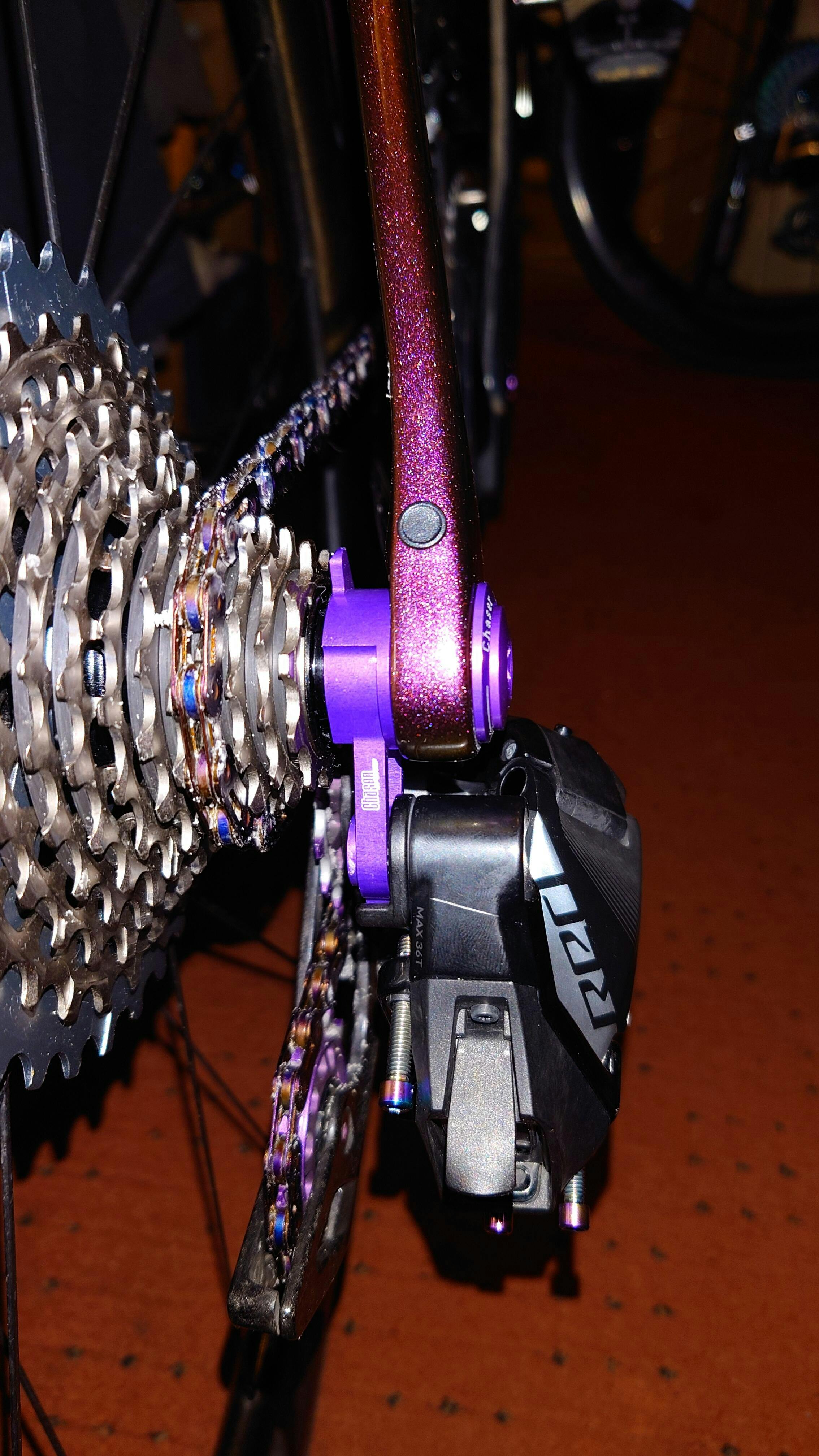 Improved stiffness from the original Shimano/SRAM pivot structure, minimises play from the stock hanger gap, improves shifting precision and responsiveness.