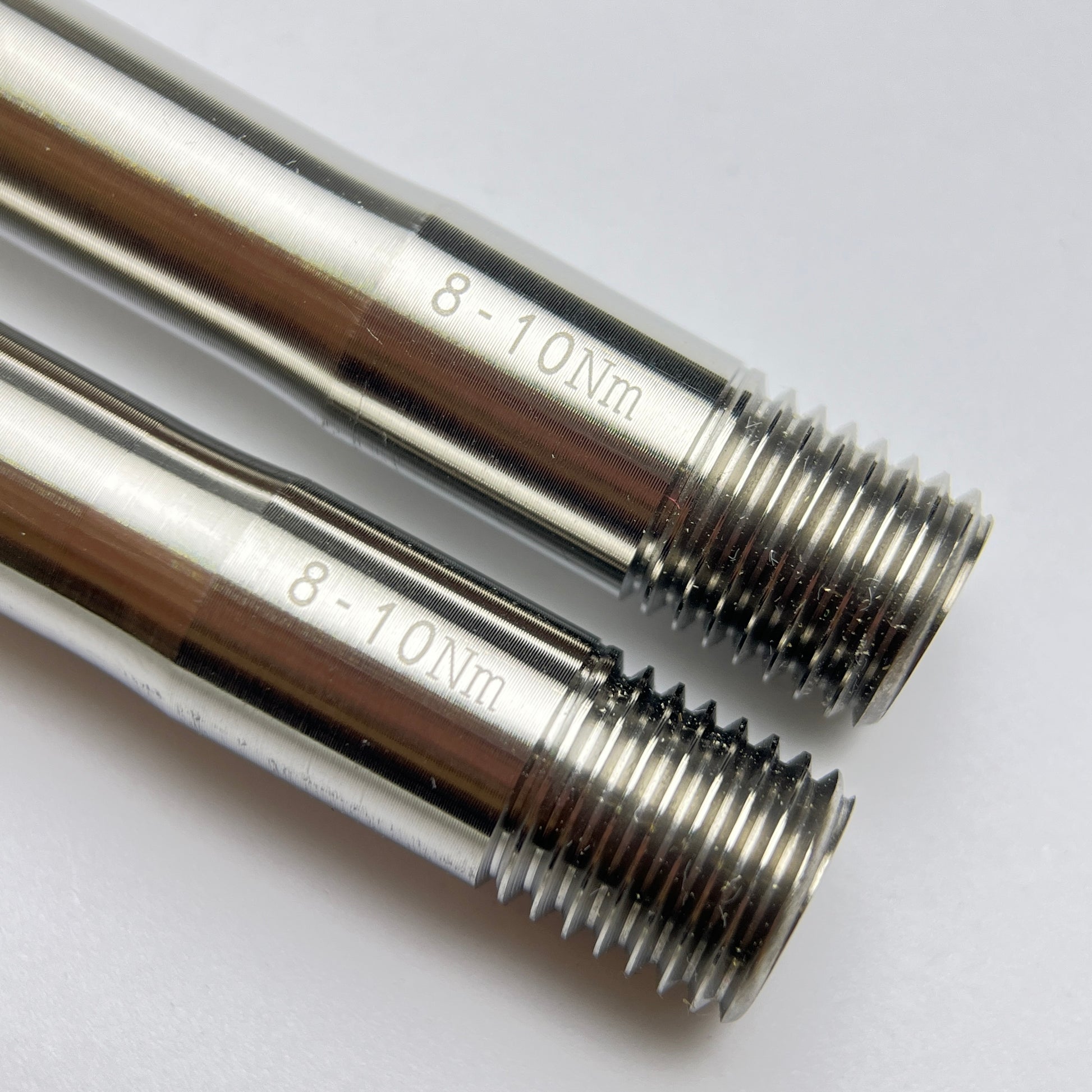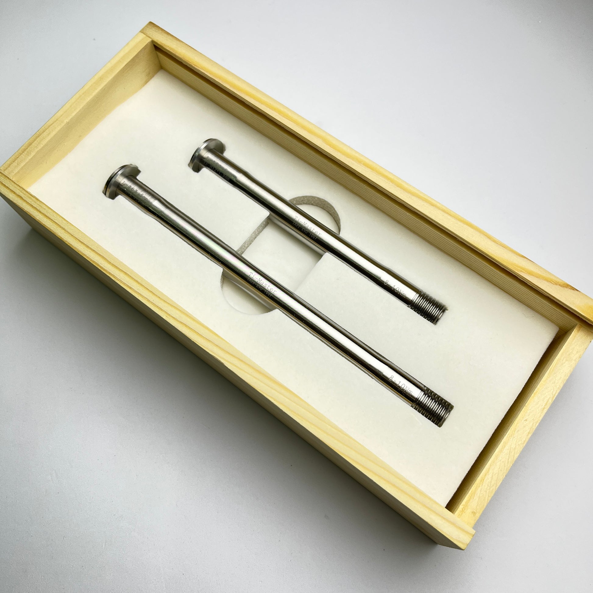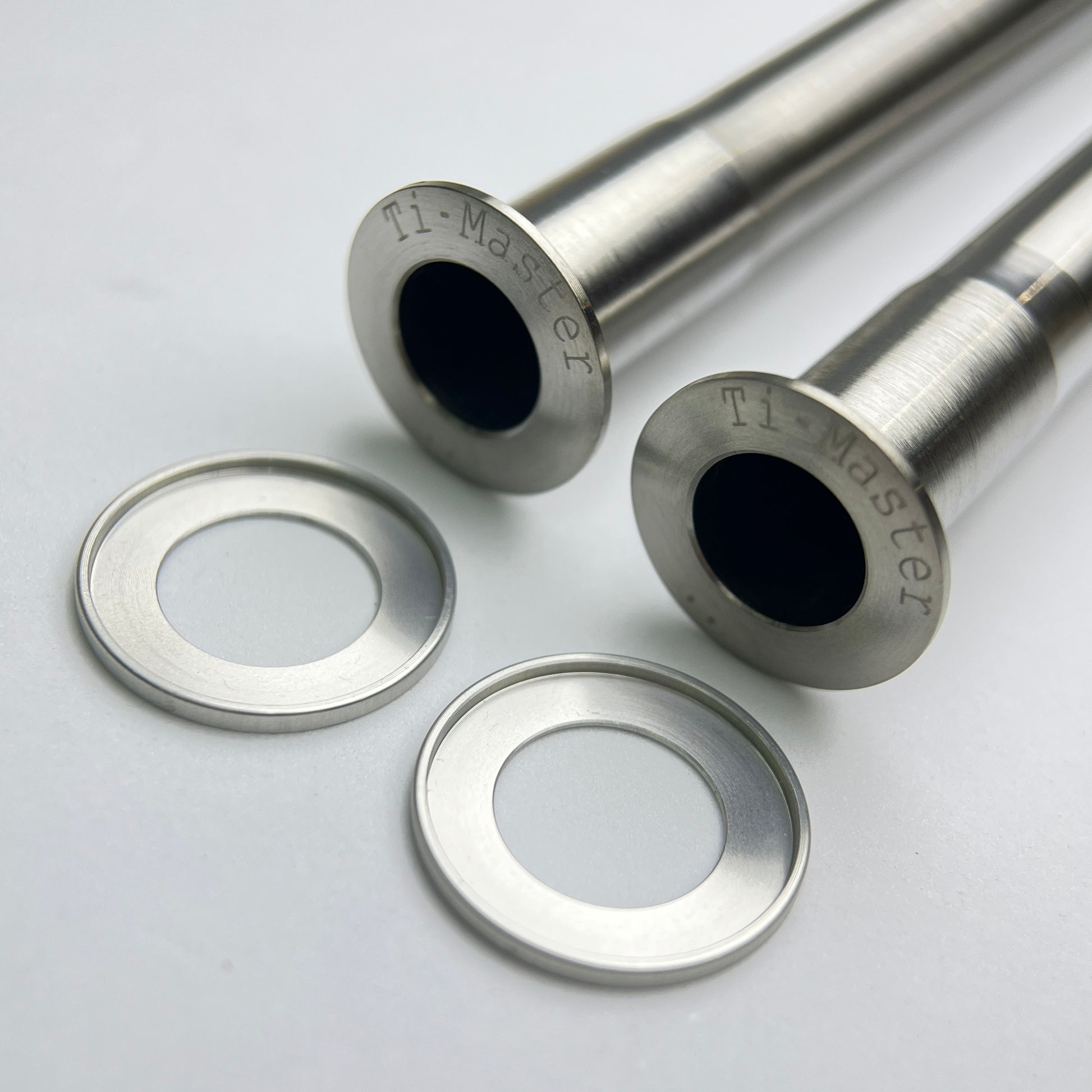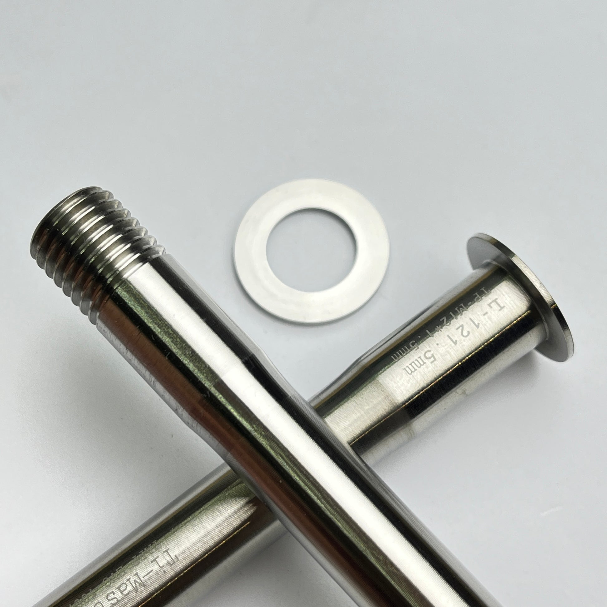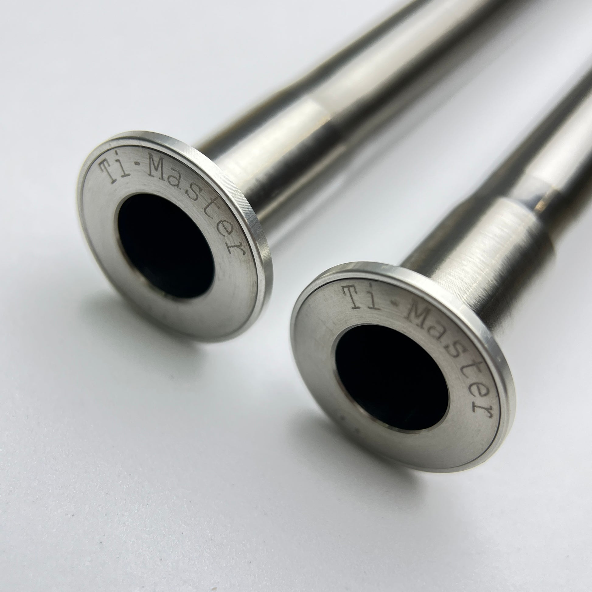 Liga de titânio especial tratada termicamente com usinagem de precisão resulta neste eixo passante de titânio ultraleve para Pinarello Dogma F 2025/2024 - a solução definitiva em termos de peso!