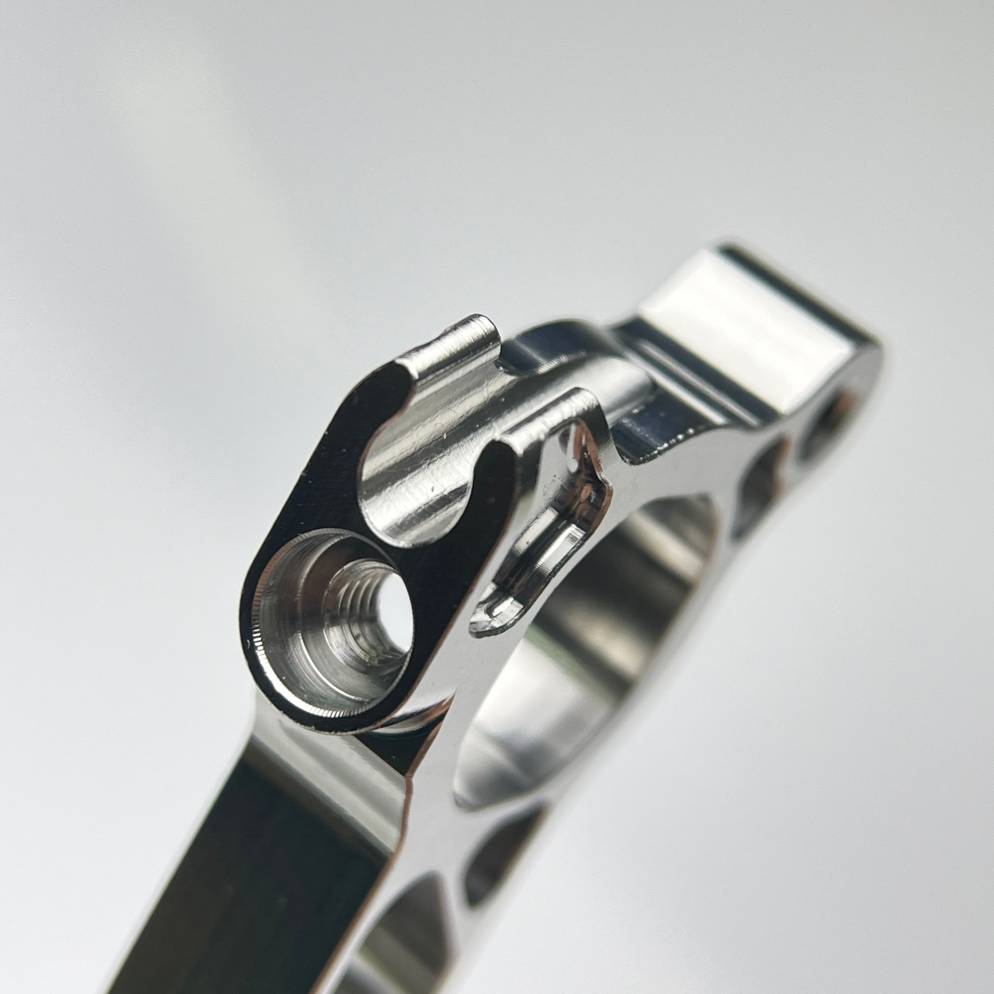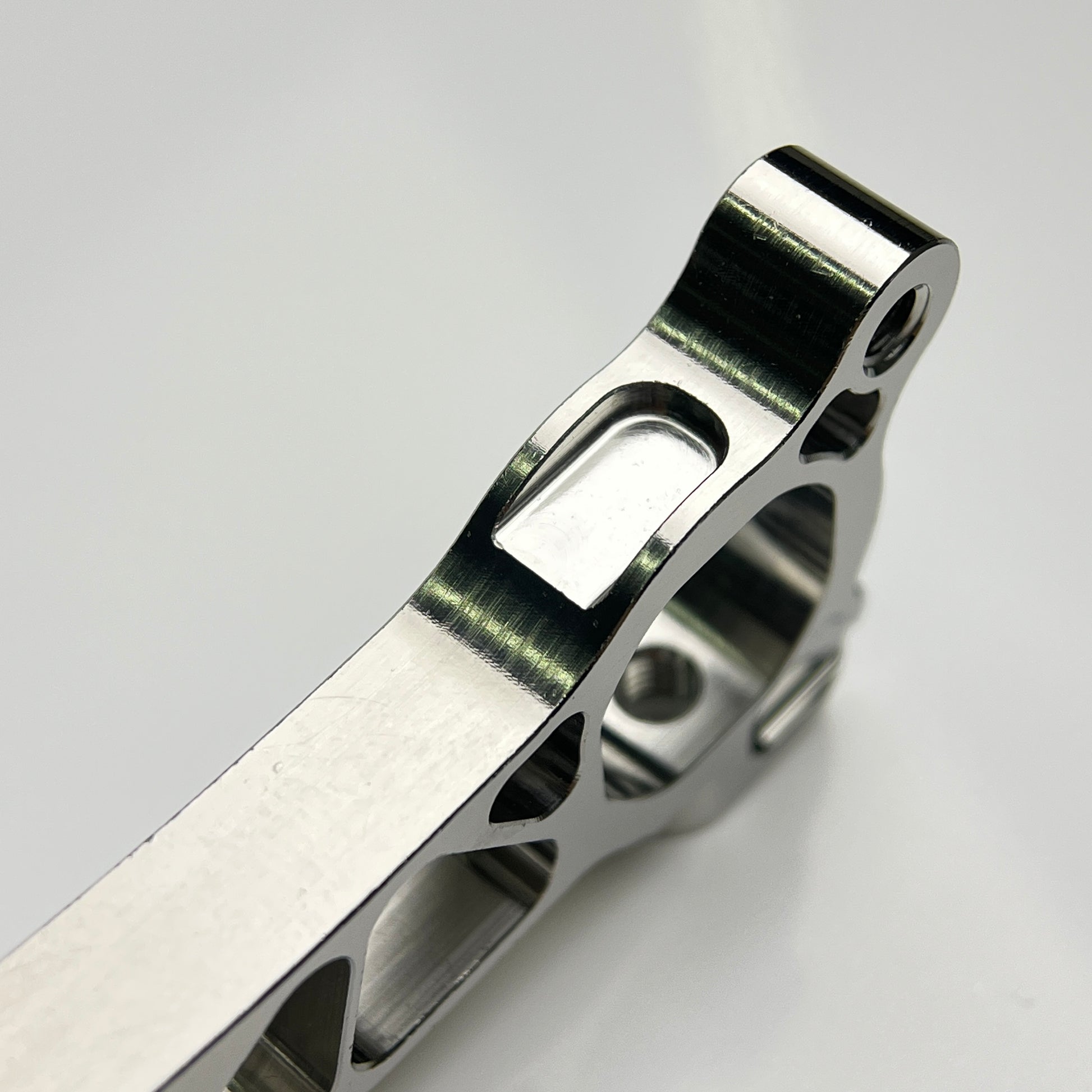 Usinado com precisão a partir de liga de titânio especial tratada termicamente.