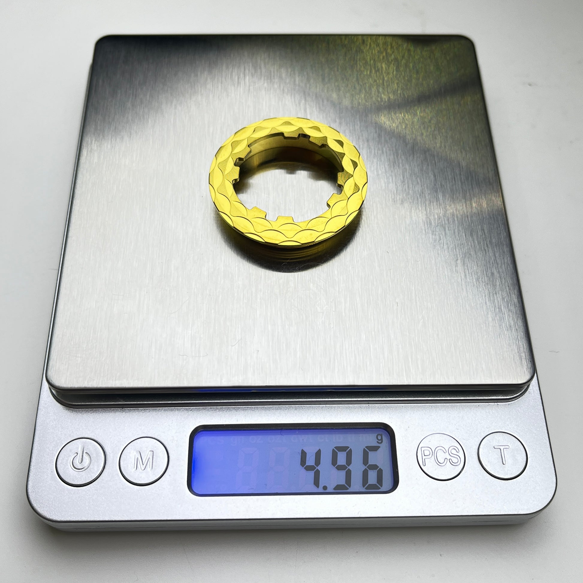 Denna låsring är tillverkad av Ti64 och är något lättare än original Dura-Ace kassettlåsringar ( 4,96 g jämfört med 5,5 g original) men ger starkare gängor och slitstyrka för upprepad användning.