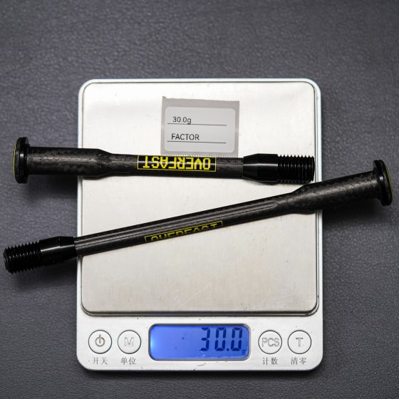 - Genomgående axel i kolfiber med aluminiumgänga och titaninsats