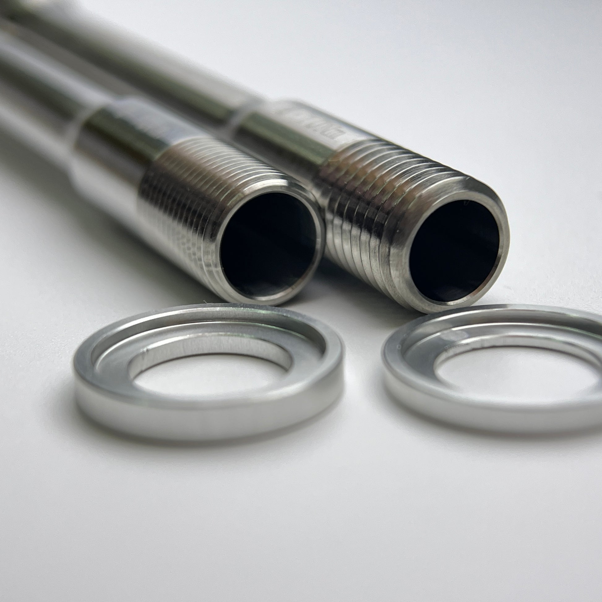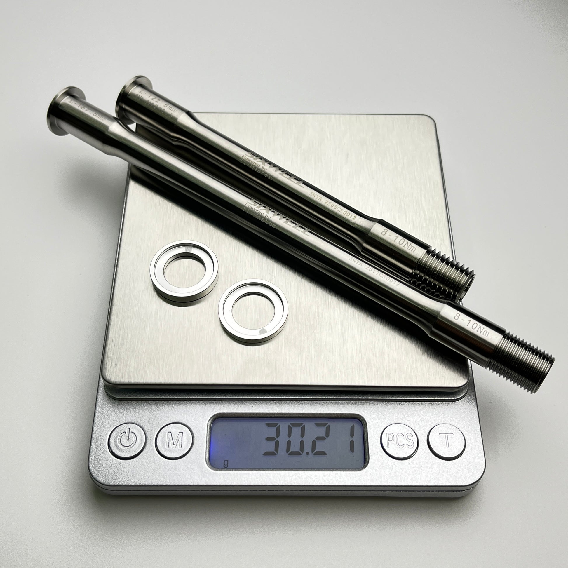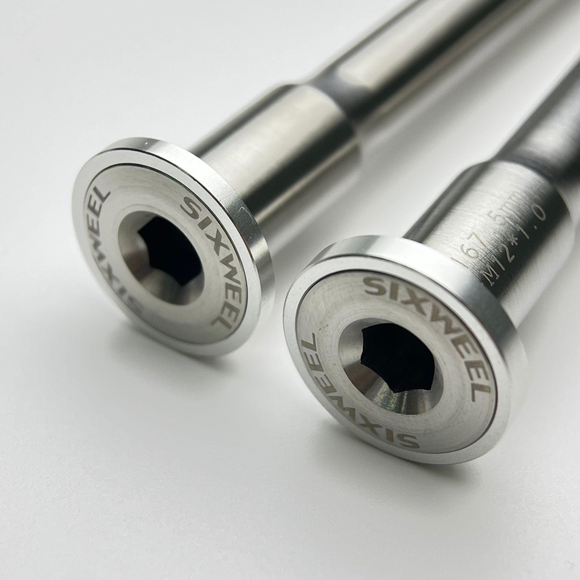 Speciell värmebehandlad titanlegering med precisionsbearbetning resulterar i denna lätta titan-genomgående axel för Colnago