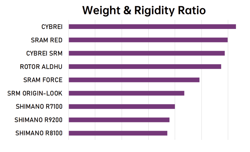 The CYBREI carbon fiber crank took 3 years from concept to implementation. During this period, it passed testing from UCI teams and World Tour racers and had good feedback. Our goal is to reduce the weight of the bike as much as possible without sacrificing stiffness. Compared with other cranks on the market, our carbon fiber crank surpasses them interms of intensity and lightweight. CYBREI provides crank leg lengths from 157.5 to 175mm,in order to giving riders more choice