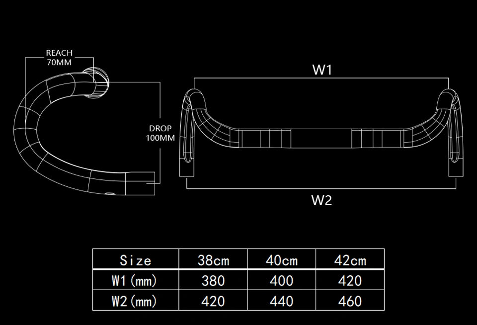 Unlike the other R-series Handlebars, the R200 has a new drop design with only a 100mm drop. This allows the rider to adopt a more relaxed position on the drops.